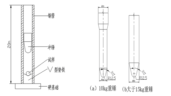 根据AS/NZS 4765(Int):2000《压力用改性PVC管材》的要求,进行22℃,20m快速冲击试验。不同管径采用不同重量的冲锤,高速冲击实验装置示意图及冲锤的形状如图1、2所示,不同管材所采用冲锤的重量和对破坏方式的要求见表2[3-5]。 表2 高抗冲PVC管材高速冲击实验要求