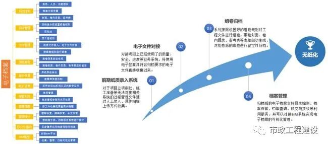 2)业务流程 1.在自贡市开展电子档案试点; 2.各专业验收表格统一、检验批划分标准化; 3.质检评定、计量支付全部线上填报审批并闭合; 4.流程自定义、限时审批; 5.资料查验合格进入档案管理系统组卷归档,移交档案馆。