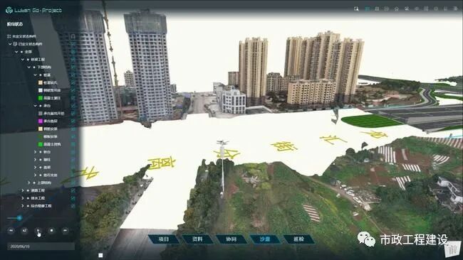 5)无人机航拍进度 利用无人机每周定点拍摄施工区域的实景影像,并结合具体施工进度与资源投入制作成航拍进度视频,将其在系统中与模型形成对比,直观体现整体的施工进度变化。