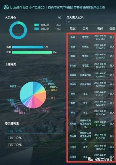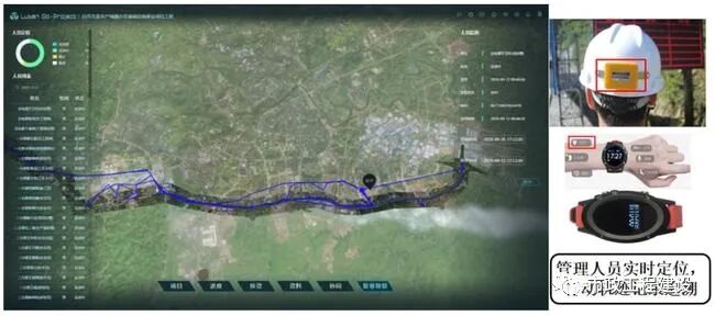 4)劳务实名制及管理人员定位 将项目390名劳务人员信息录入系统,并在工地进出口设置实名制闸机,通过系统可实时了解现场人员工种与进出场等情况,同时将人员考勤对接银行工资系统;项目的88名管理人员佩有定位手环,被无线基站自动定位后,会在系统上显示该人员的具体位置,系统自动记录人员轨迹,方便查找并可按照需要回放,对人员在岗履职进行有效的监督。